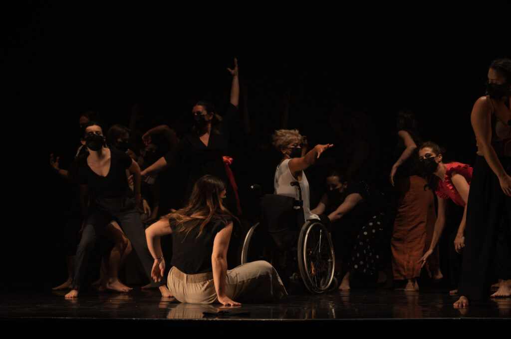 Ho visto persone con disabilità accompagnate dalla grazia di un gesto, da uno sguardo, da una mano poggiata sulla spalla sudata. Ho visto mani e sguardi che indicavano diagonali di luce, punti di fermo, sedie su cui accavallare le gambe. Ho visto le stereotipie confondersi con coreografie e ballerine portare a spalla sedie a rotelle. Ho visto lo sfarfallio delle piccole mani di Sofia trasferirsi in altre mani e da lì mutarsi in farfalle vere. Ho visto un mondo ribaltato. Ci siamo ribaltati tutti, come quando infili la maschera al mare e te ne stai a guardare l’altro mondo al contrario.